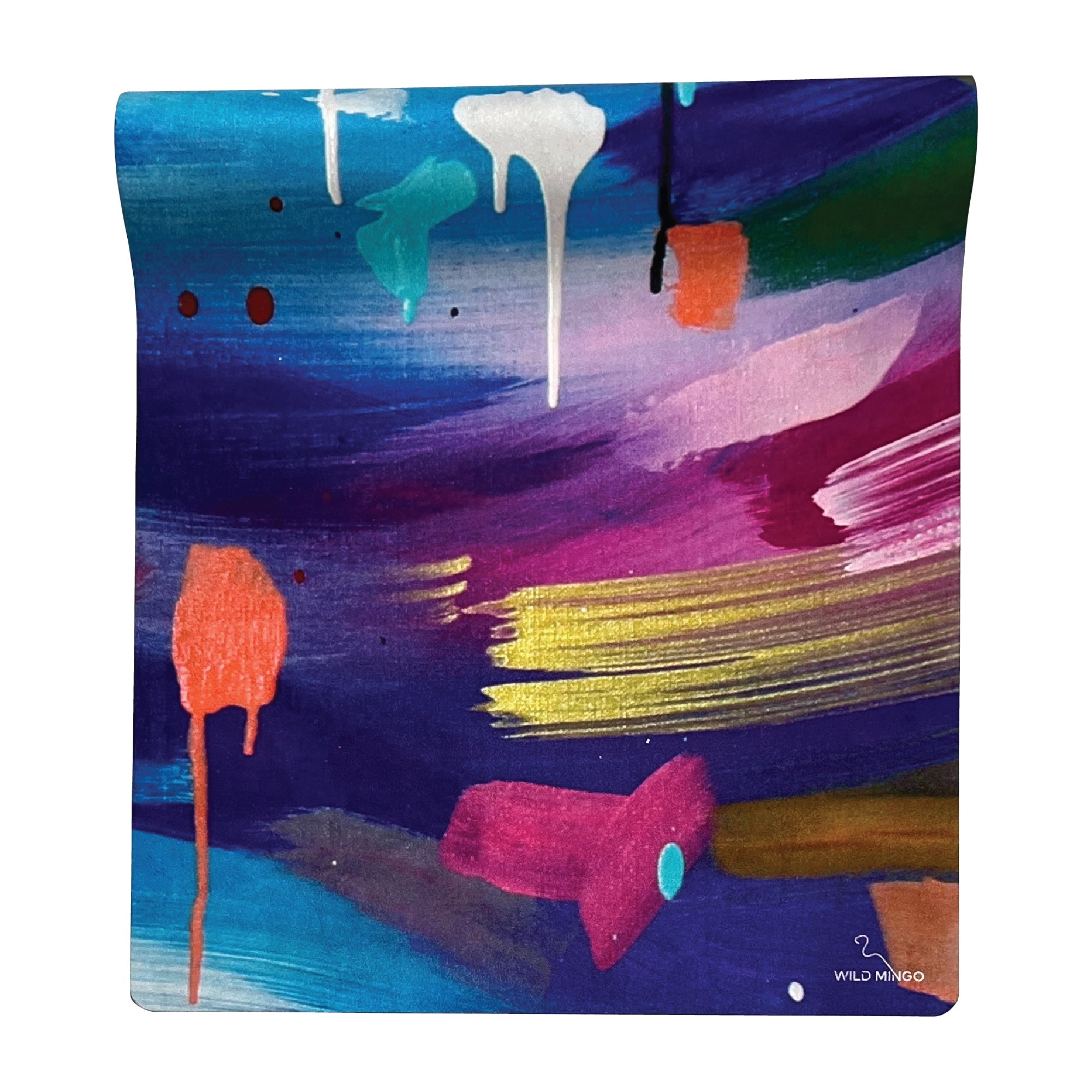 Perfect for yoga/Pilates/Barre. Washable. Recycled rubber/microsuede (vegan). Non-slip. 183x61cm, 3mm thick. Includes Wild Mingo carry strap.