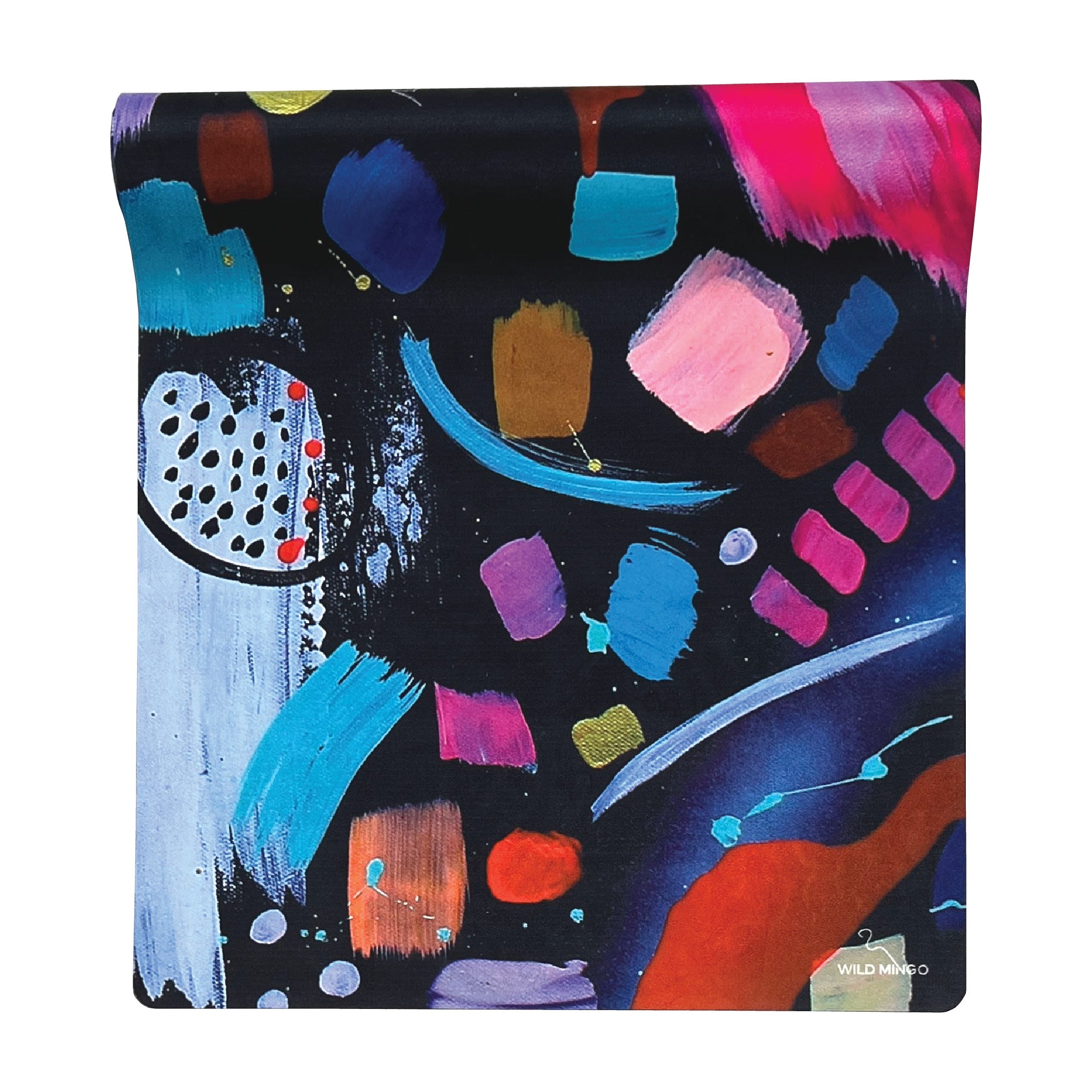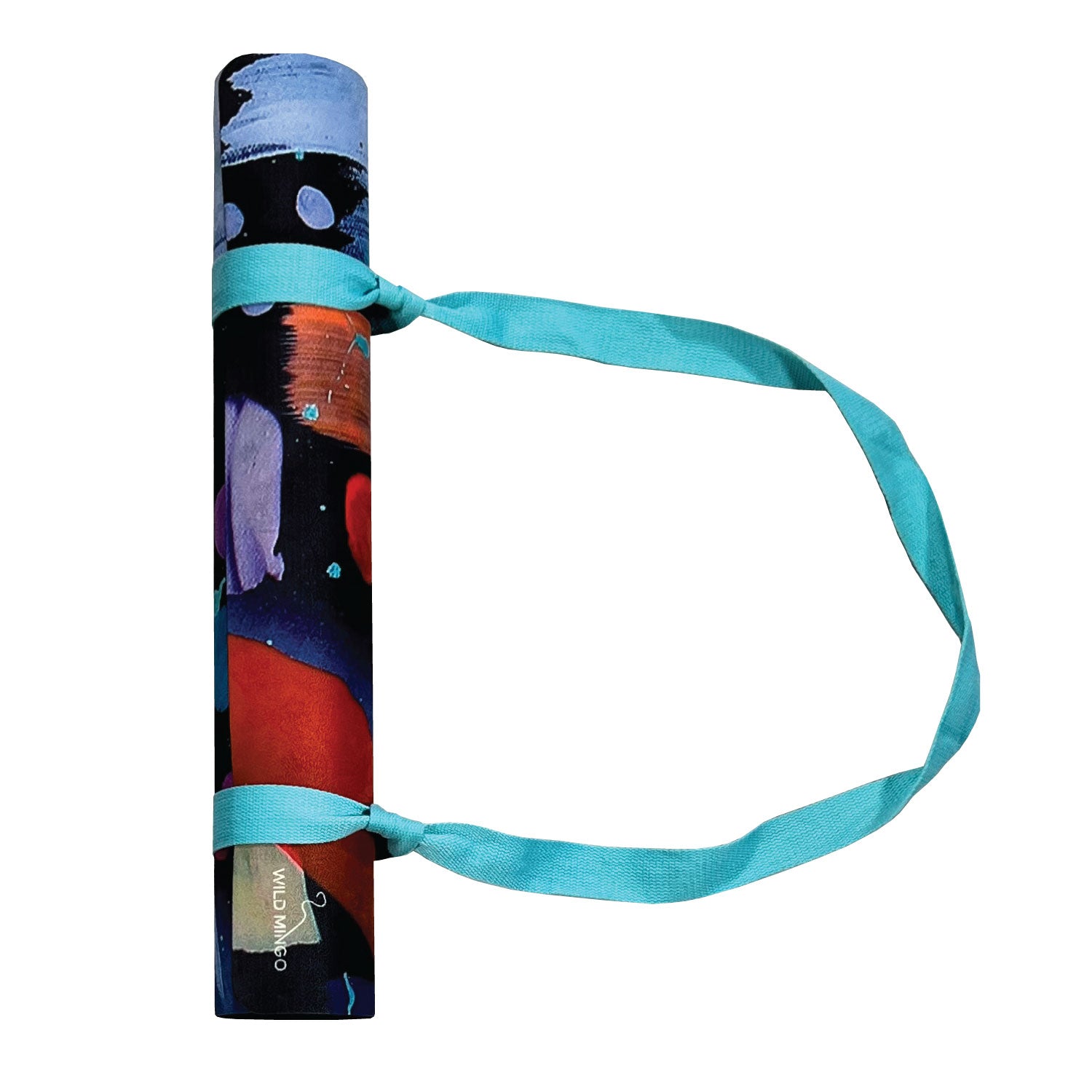 Perfect for yoga/Pilates/Barre. Washable. Recycled rubber/microsuede (vegan). Non-slip. 183x61cm, 3mm thick. Includes Wild Mingo carry strap.